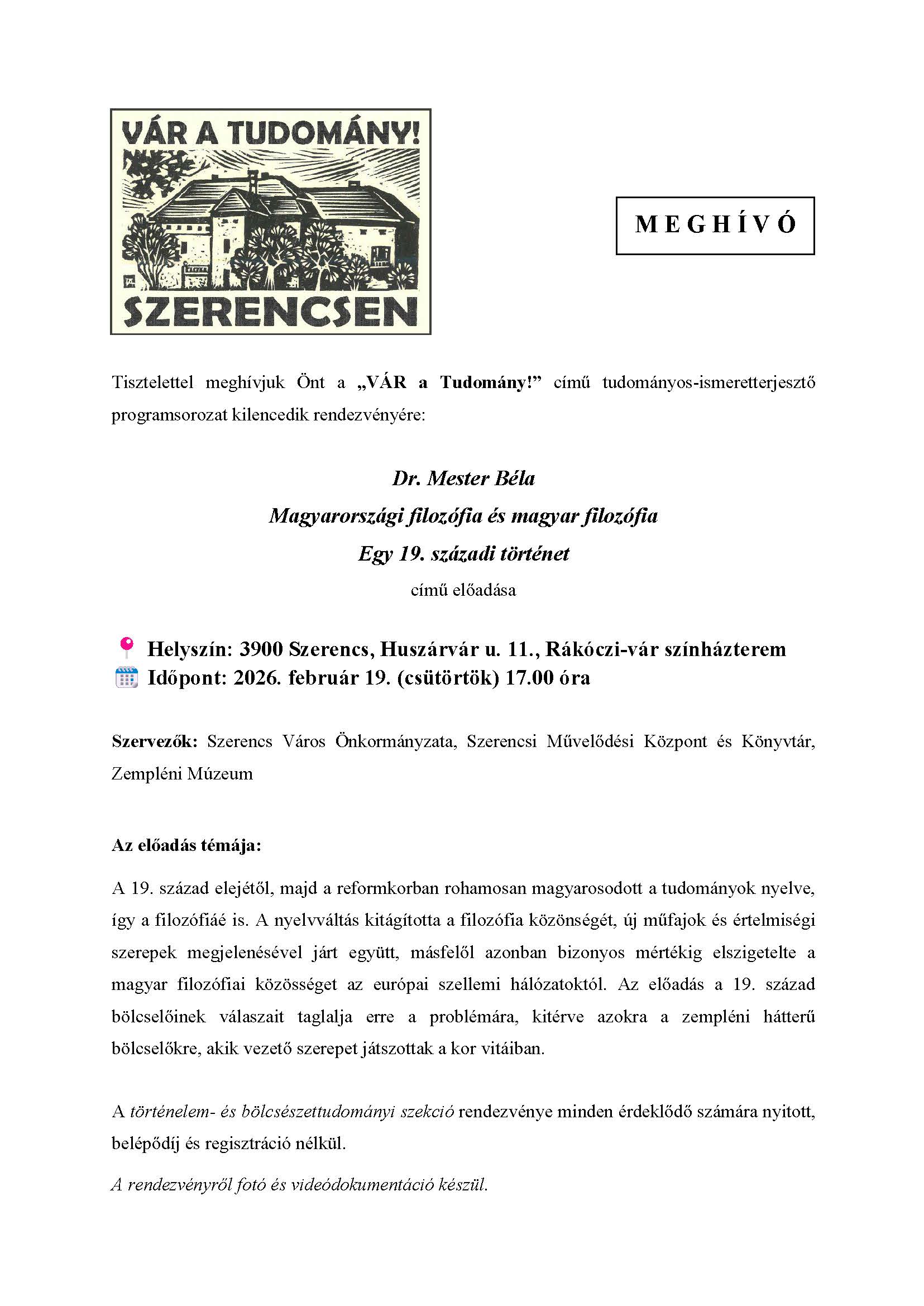 [MaFLA] VÁR a Tudomány! - M E G H Í V Ó Mester Béla előadására